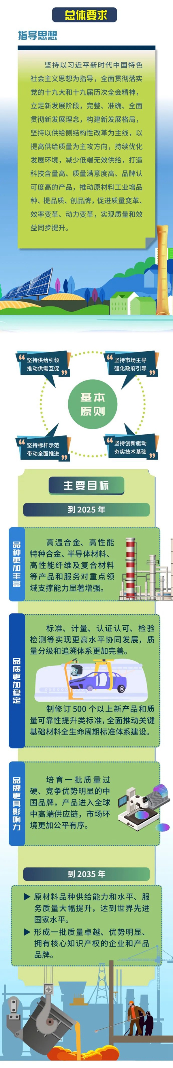 到2035年,原材料品種供給能力和水平、服務(wù)質(zhì)量大幅提升,達(dá)到世界先進(jìn)國(guó)家水平,形成一批質(zhì)量卓越、優(yōu)勢(shì)明顯、擁有核心知識(shí)產(chǎn)權(quán)的企業(yè)和產(chǎn)品品牌。