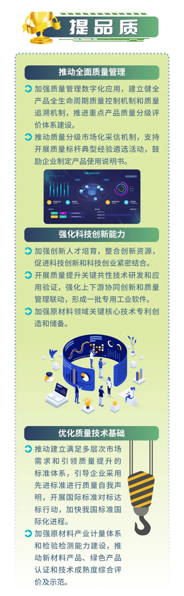 提品質(zhì)——推進(jìn)建材等行業(yè)產(chǎn)品質(zhì)量分級(jí)評(píng)價(jià)體系建設(shè),推動(dòng)建立質(zhì)量分級(jí)、應(yīng)用分類的市場(chǎng)化采信機(jī)制。