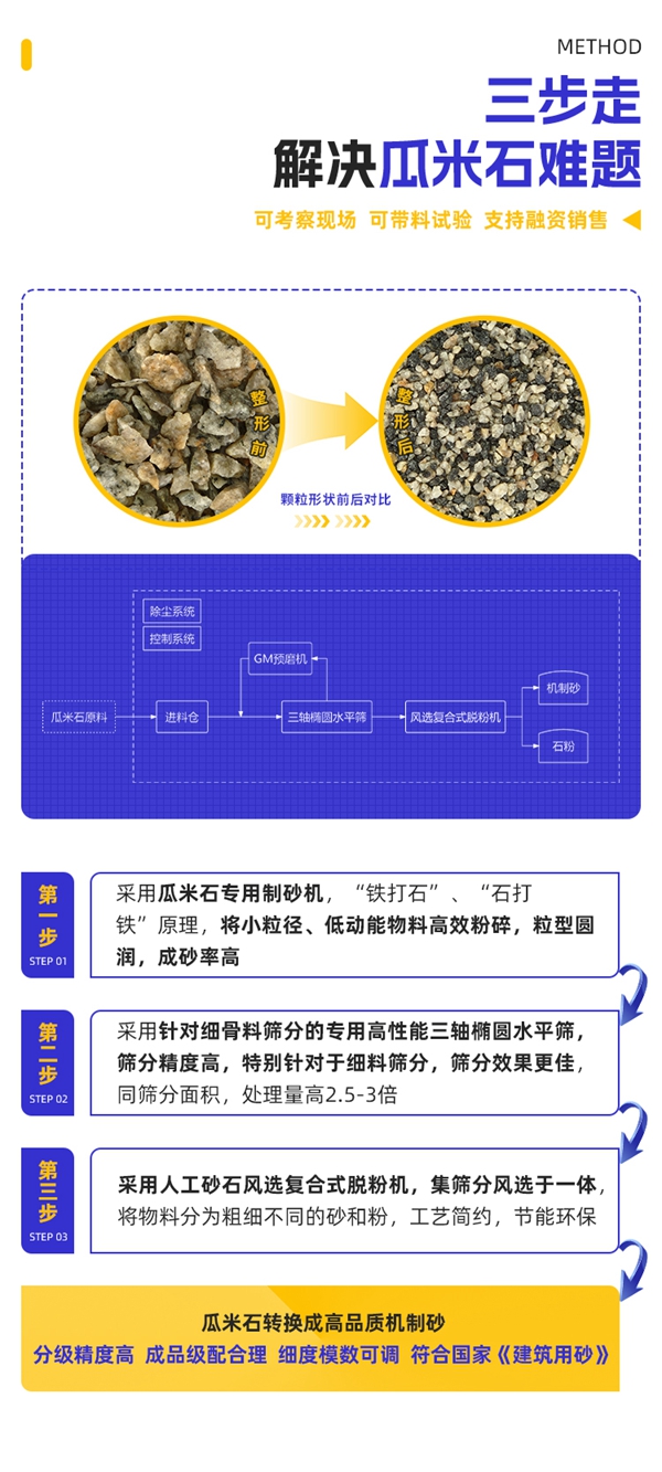 瓜米石是一種質(zhì)地堅(jiān)硬的石材,常用于建筑和道路工程。在瓜米石的加工過程中,選擇什么樣的制砂機(jī)扮演者重要的角色。