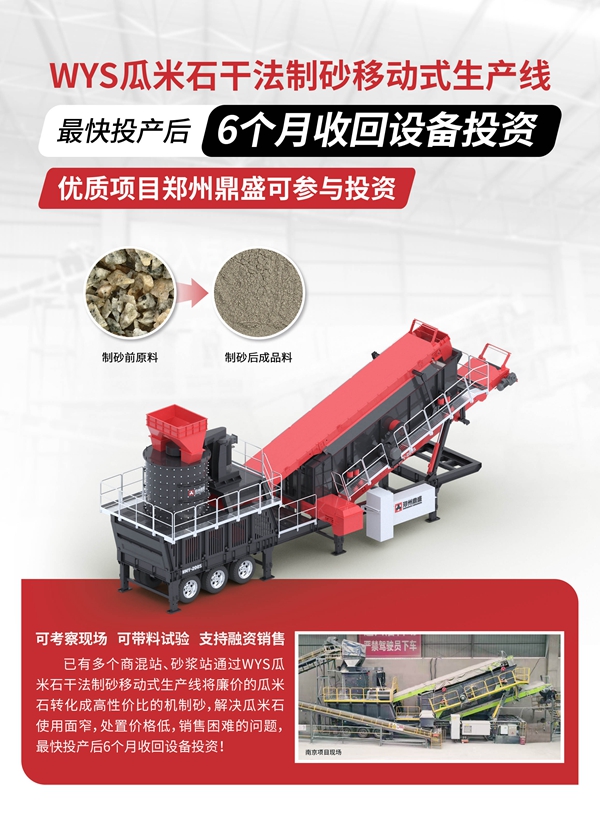 WYS瓜米石干法制砂移動式生產(chǎn)線:專門針對瓜米石等低動能、低產(chǎn)率、磨損較大的小骨料制砂研發(fā),將給料料倉、帶式定量給料機、制砂篩分輪胎移動站等設(shè)備通過合理的工藝優(yōu)化組合,將廉價瓜米石成功轉(zhuǎn)化為優(yōu)質(zhì)機制砂,具有超快收回投資、超低電耗、超便捷轉(zhuǎn)場等顯著優(yōu)勢,成品機配合理,細度模數(shù)可調(diào),符合國家《建筑用砂》、《建筑用卵石、碎石》標(biāo)準。
