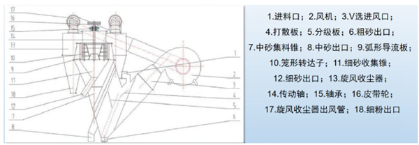 第三步:采用人工砂石風(fēng)選復(fù)合式脫粉機(jī),集篩分風(fēng)選于一體,將物料分為粗細(xì)不同的砂和粉,工藝簡約,節(jié)能環(huán)保。