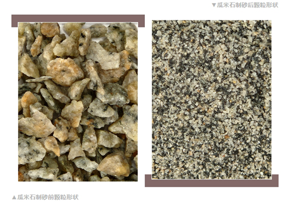 瓜米石又稱石沫、石粉、豆石,因品相與瓜子片相像,顆粒小而又常見于針片狀、扁平狀存在,粒型特別差,所以限制了其使用領(lǐng)域,給骨料銷售帶來困難,時常于低價格或者廢棄料處置。