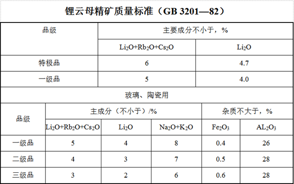 (1)該標(biāo)準(zhǔn)適用于經(jīng)過選別富集而獲得的鋰云母精礦,供提取鋰及其化合物和玻璃、陶瓷工業(yè)用。
