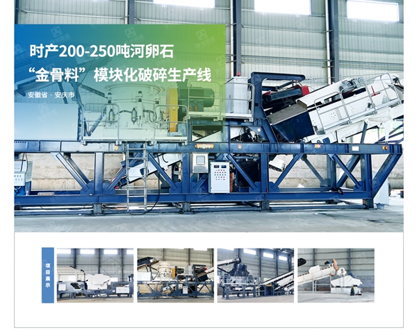 制砂模塊通常包括:給料、粗碎、中細(xì)碎、制砂、篩分幾個(gè)環(huán)節(jié),時(shí)產(chǎn)100噸生產(chǎn)線屬于中型砂石生產(chǎn)線,推薦使用模塊化制砂系統(tǒng),多個(gè)設(shè)備組合在一個(gè)撬裝模塊上,并標(biāo)配有皮帶機(jī)、連接件等多個(gè)功能組成的單元,如“喂料 顎破/反擊破”的粗碎模塊、“反擊破/圓錐破 篩分”的中細(xì)碎模塊、“制砂 篩分”的制砂模塊、“振動篩 皮帶機(jī)”的篩分分級模塊。