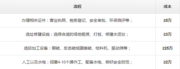 以上是從市場統(tǒng)計數(shù)據(jù)分析得來的開辦石料廠流程與需要的成本,總計約需要35萬以上的投資成本,不同的規(guī)模、產量需求決定了不同的成本,如果您想獲取更詳細的專屬石子加工廠每噸成本、方案分析,可點擊在線咨詢 ,由廠家專業(yè)人員在線為您解答。