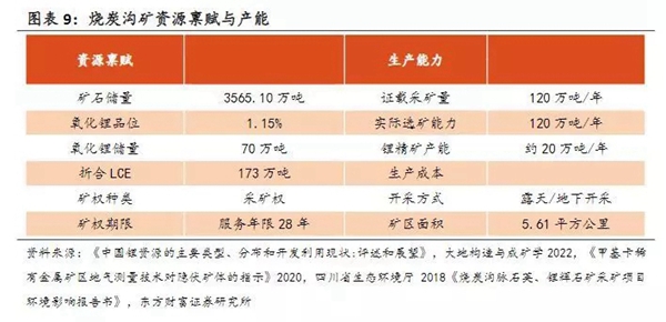 資源稟賦&產(chǎn)能:燒炭溝的鋰礦儲量較大,開工建設條件為措拉二級建成運行,其開采的礦石全部外售措拉二期工程選礦。