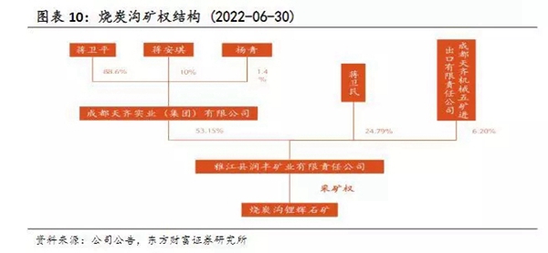礦權歸屬:燒炭溝鋰輝石礦的采礦權由天齊鋰業(yè)子公司雅江潤豐所有。該燒炭溝采礦權為雅江縣潤豐礦業(yè)所有,潤豐礦業(yè)為天齊鋰業(yè)控股子公司,天齊對其持股比例53.15%,蔣衛(wèi)民持股24.79%,其他股東持股合計22.06%。