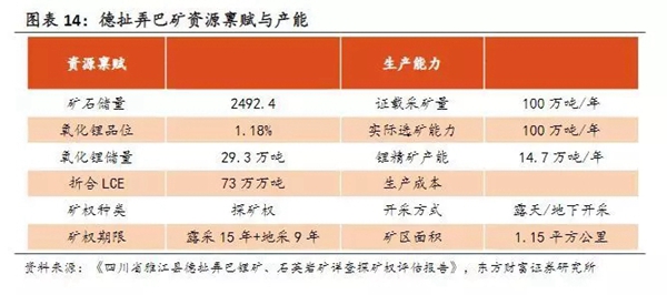 資源稟賦:根據(jù)云南陸緣衡礦業(yè)權評估有限公司出具的《四川省雅江縣德扯弄巴鋰礦、石英巖礦詳查探礦權評估報告》,德扯弄巴鋰礦的礦石資源儲量2492.4萬噸,氧化鋰品位1.18%,折合Li2O資源儲量約29.3萬噸,折合碳酸鋰當量72.4萬噸,屬于特大型鋰礦。