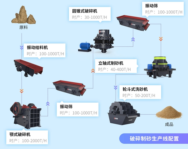 上述是搭建河卵石制砂生產(chǎn)線的主要設(shè)備,具體配置哪一些型號,還需要客戶根據(jù)產(chǎn)能規(guī)模、現(xiàn)場情況、成品粒度等要求來進行合理配置。