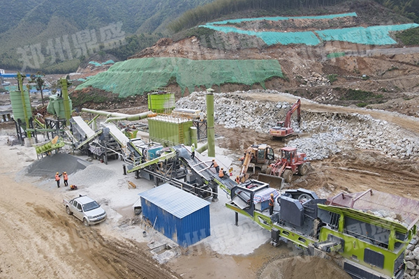 湖南時(shí)產(chǎn)150噸花崗巖破碎制砂洗砂現(xiàn)場(chǎng)
