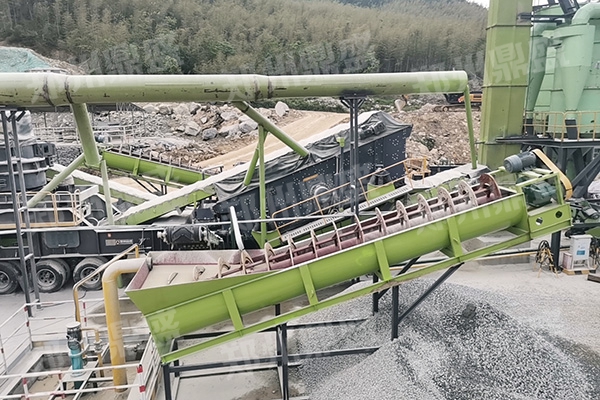 鄭州鼎盛在湖南建設(shè)的時(shí)產(chǎn)150噸花崗巖制砂生產(chǎn)線包括了給料、破碎、制砂、洗砂等模塊,其中洗砂模塊采用的XL螺旋式洗砂機(jī)。