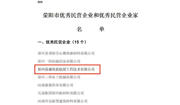 近日,中共滎陽(yáng)市委公布了《關(guān)于滎陽(yáng)市優(yōu)秀民營(yíng)企業(yè)和優(yōu)秀民營(yíng)企業(yè)家》的名單。鄭州鼎盛高新能源工程技術(shù)有限公司(以下簡(jiǎn)稱“鄭州鼎盛”)榮獲“滎陽(yáng)市優(yōu)秀民營(yíng)企業(yè)”榮譽(yù)稱號(hào)。