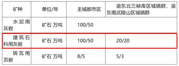 重慶市肩負黨中央、國務(wù)院賦予的重大使命,新型城鎮(zhèn)化、新型基礎(chǔ)設(shè)施和交通、水利等重大工程建設(shè),對建筑砂石等建筑材料需求將維持在高位運行。要依據(jù)資源稟賦、開發(fā)利用等情況,科學劃定重點勘查區(qū)、重點開采區(qū)和集中開采區(qū)。加大石灰?guī)r等優(yōu)勢礦產(chǎn)勘查開發(fā)力度。