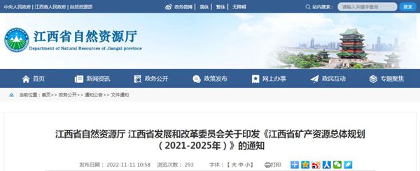 日前,江西省自然資源廳、發(fā)改委印發(fā)《江西省礦產資源總體規(guī)劃(2021-2025年)》(下附全文),提出至2025年,江西戰(zhàn)略性與優(yōu)勢礦產實現新的找礦突破,資源保障能力不斷增強。礦業(yè)開發(fā)布局與結構進一步優(yōu)化,礦產資源開發(fā)利用水平明顯提升,礦業(yè)產業(yè)集群進一步壯大。