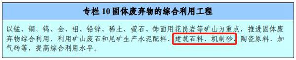 《規(guī)劃》明確,根據各地區(qū)資源稟賦、環(huán)境承載力、市場需求、運輸半徑等條件,合理確定區(qū)內砂石采礦權總量、最低開采規(guī)模,有序投入砂石采礦權。積極引導有條件地區(qū)劃定集中開采區(qū)。在集中開采區(qū)內,積極推動建設儲量規(guī)模1500萬噸以上、生產規(guī)模 100萬噸/年以上的礦山,促進砂石資源規(guī)模開發(fā)。 合理確定制砂所需建筑用石料采礦權出讓政策,保障機制砂原材料供應。在保證產品質量和生態(tài)安全的前提下,鼓勵利用礦山尾礦與廢石生產機制砂,節(jié)約資源,提高礦山固體廢物綜合利用水平。