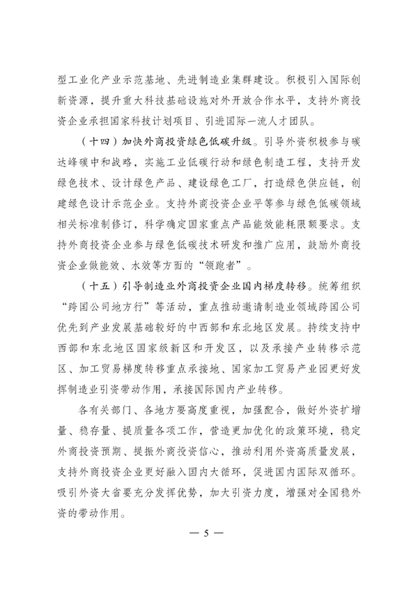《關(guān)于以制造業(yè)為重點(diǎn)促進(jìn)外資擴(kuò)增量穩(wěn)存量提質(zhì)量的若干政策措施》已經(jīng)國務(wù)院同意,現(xiàn)印發(fā)給你們,請(qǐng)認(rèn)真組織實(shí)施。